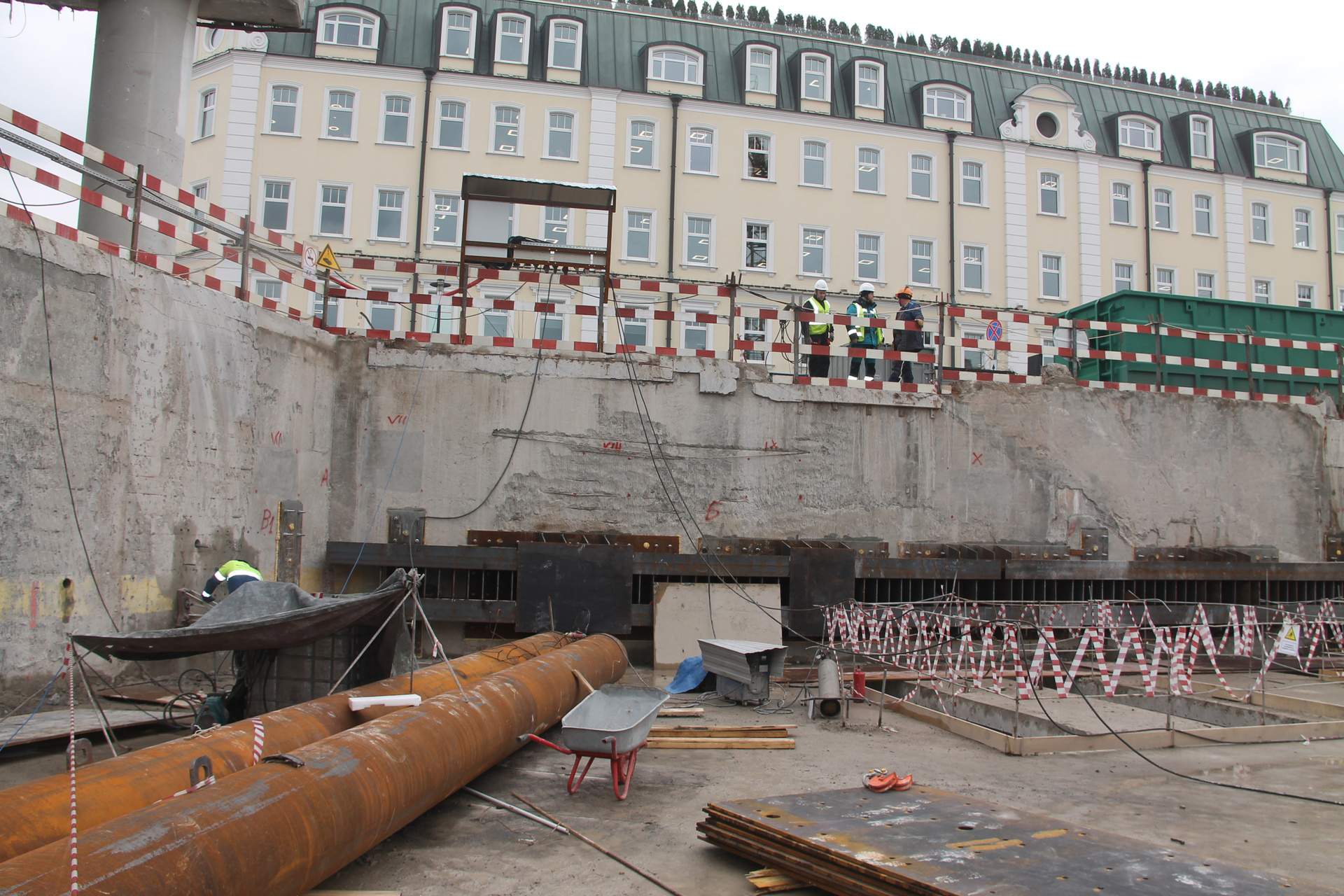 — Determination of the retaining wall thickness (including the shotcrete layer) at the inspection area was impossible due to adhesion failures between the shotcrete layer and the substrate (adhesive bond in the contact zone) and delamination of the shotcrete layer. RECOMMENDATIONS Remove the shotcrete layer with adhesion failures to the substrate (adhesive bond in the contact zone) and delaminated shotcrete layer in specific zones. Restore and repair the concrete cover layer in the areas where the shotcrete layer of the retaining wall was removed on the -1 (first basement) floor in accordance with the requirements of applicable regulatory documents.